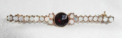 1900 EDWARDIAN UNMARKED YELLOW GOLD BAR PIN w. GARNET & WHITE OPALS (Le)