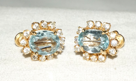 Vintage US 14k Yellow Earrings w. 2x Blue Topaz & 12x Cubic Zirconia (GoB)#13b