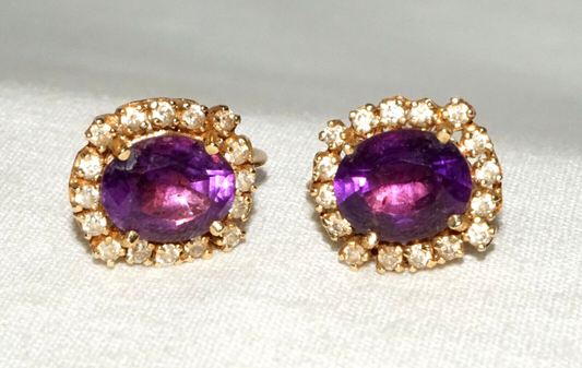 Vintage US 14k Yellow Earrings w. 2x Amethysts & 32x Cubic Zirconia (GoB)#12b