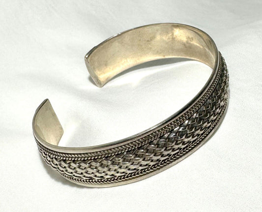 Vintage Sterling Silver 925 Basketweave Artisan Woven Cuff Bracelet (KiL)14