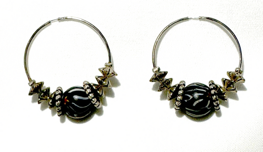 Vintage Unmarked Silver Hoop Earrings w Decorative Bead Accents (LoC)16