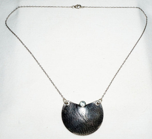 Vintage Sterling Silver Artisan Made Necklace & Texture Pendant w. Quartz (JoD)