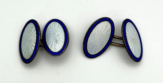 Vintage Sterling Enameled Cuff Links Blue & Silver Marked Sterling (MiM)