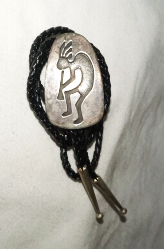 Vintage South Western Sterling Silver Kokopelli Motif Bolo Tie (KiL)