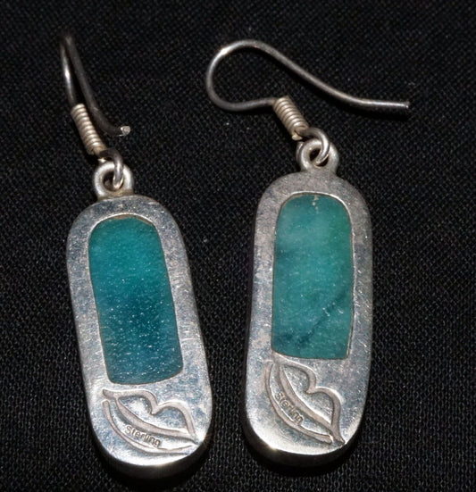Vintage Sterling Silver Framed Green Composite Accent Earrings by Lips (WoJ)