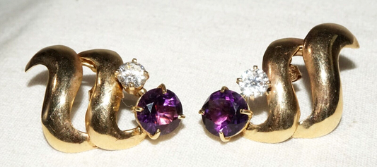 Vintage Modernist 14k Yellow Earrings 2x Amethysts & 2x Cubic Zirconia (GoB)#18b