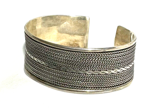 Vintage Modernist Sterling Silver Cuff Bracelet Wire & Bar Design unsigned (WoJ)