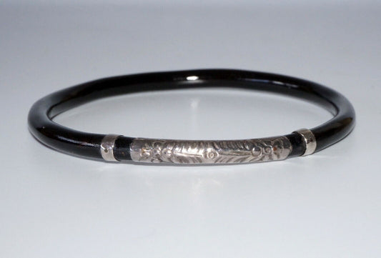 Vintage S.E. Asian Black Coral Bracelet w. 3x Silver Accents (Mit)
