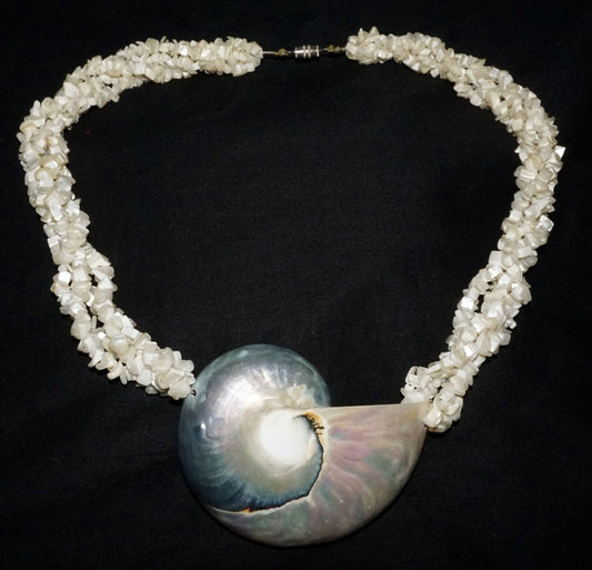 Vintage Shell Bead Necklace & Attractive Shell Pendant w. Screw Clasp (ShI)