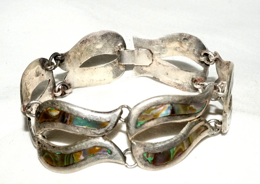 Vintage Mexican Modernist Sterling Silver & MoP Link Bracelet by DHS (TuD)