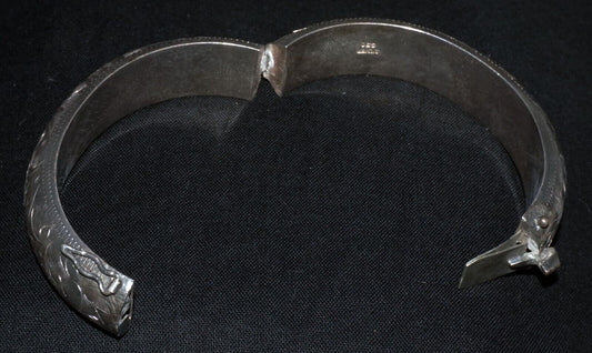 Vintage Japanese 950 Silver Hinged Bangle Bracelets Incised Scroll Motifs (WoJ)