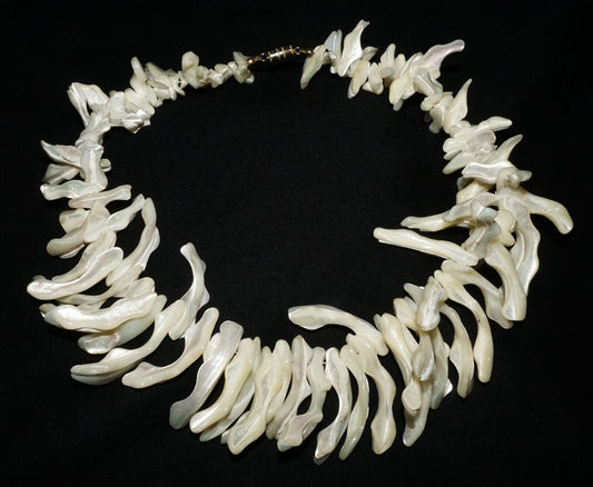 Vintage Chopped Shell or Mother of Pearl Abstract Bead Necklace w. Clasp (ShI)