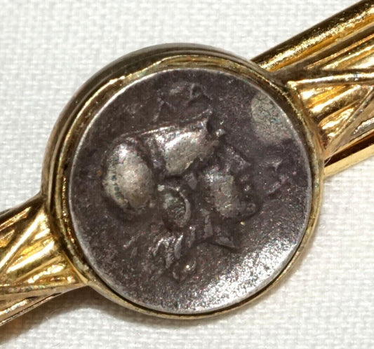 Vintage Gold Plated Sterling Silver Tie Bar w. Bezel set Greek Coin Accent (AHB