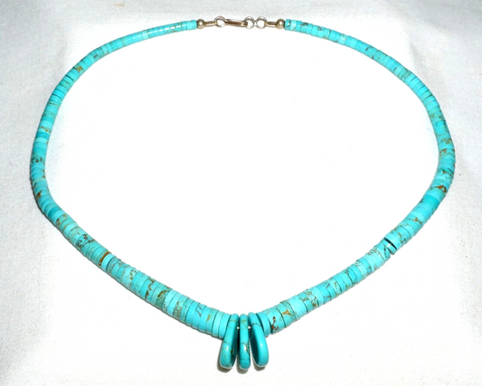 Vtg South Western Silver set Turquoise Disk Bead Necklace w. Disk Pendant (---)