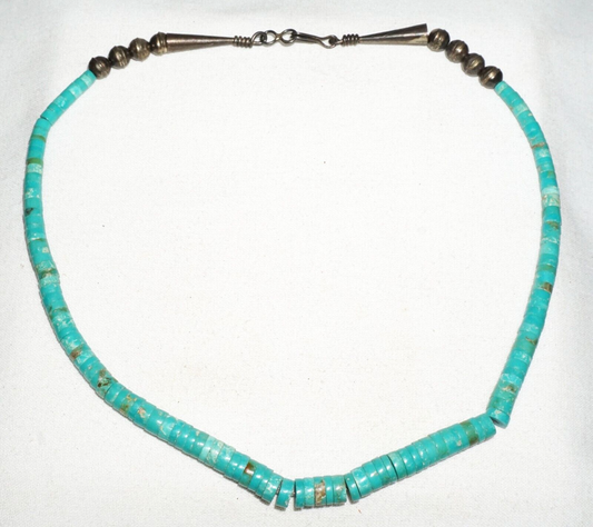 Vintage South Western Silver set Turquoise Disk Bead Necklace (---)