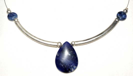 Vintage US Silver Necklace w. 3x Sodalite Bead Accents (KiL)