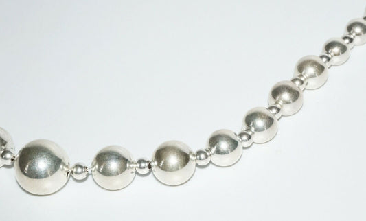 Vintage Sterling Silver Necklace set Silver Colored Graduated Beads (SaR)#236