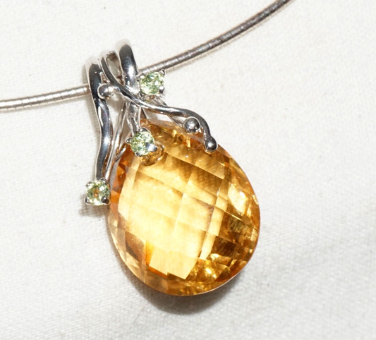Vintage Sterling Silver Cable Choker Necklace w. Topaz & Peridot Pendant (---)