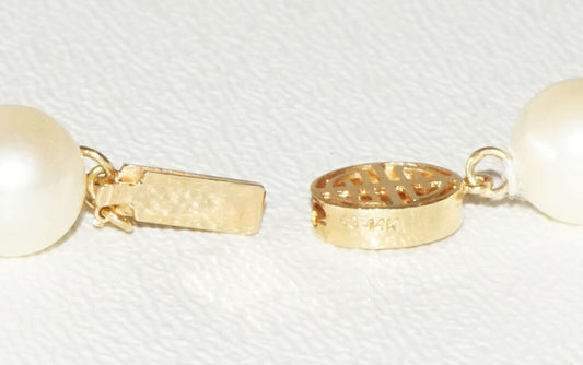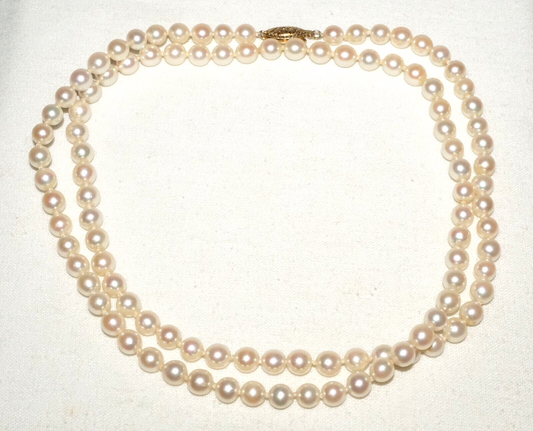 Vintage Single Strand Pearl Necklace w. 14k Yellow Gold Pierced Clasp (TaE)#55