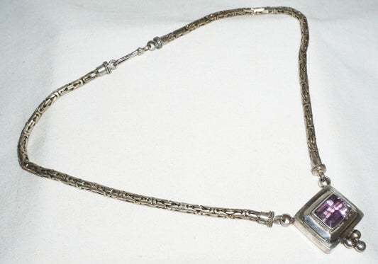 Vintage Modernist Sterling Silver Necklace w. Sterling Pendant w. Amethyst (---)