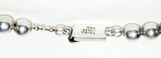 Vintage Mexican Sterling Silver Graduated Bead Necklace w. Clasp (KoS) L9
