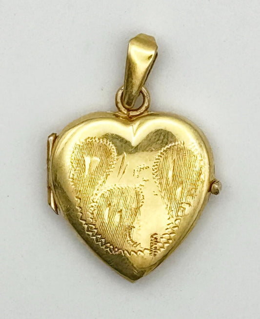Vintage Italian 14k Yellow Gold Double Heart Locket Pendant for 2 Photos (McC)