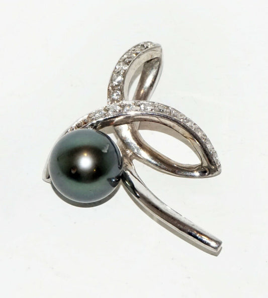 Vintage Modernist Sterling Silver Pendant w South Sea Pearl & Cz Accents(LeP)#10