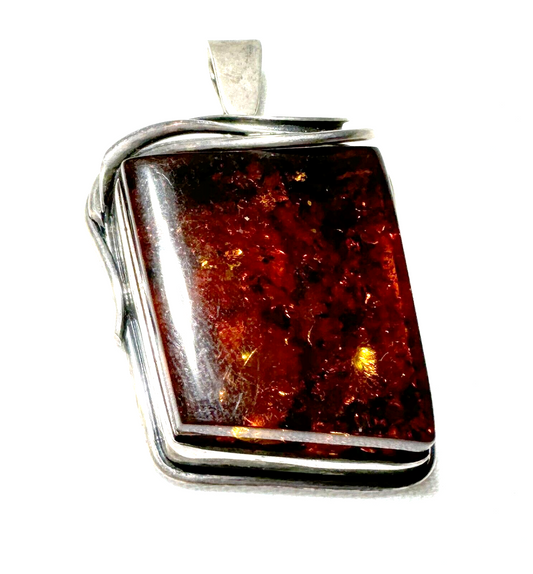 Vintage Modernist Sterling Silver Pendant with Baltic Amber Accent (LoC)22