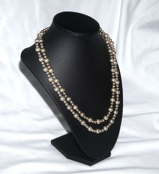 Vintage Silver Dark Tone Beaded Necklace w Fish Clasp - 40 inches (QuC)