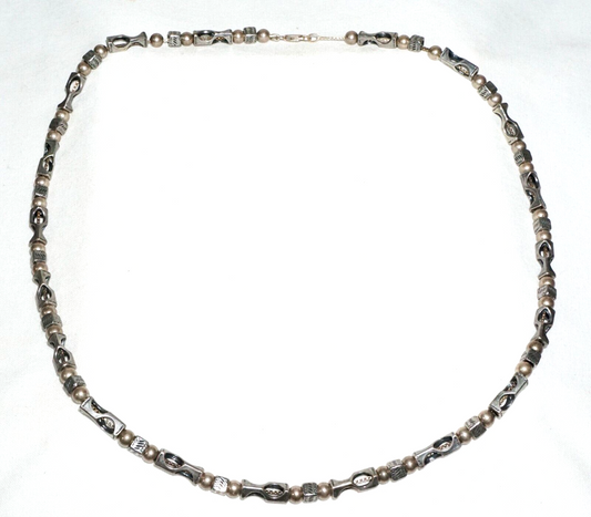 Vintage Mexican Modernist Rectangular & Ball Design Bead Necklace 20" (---)