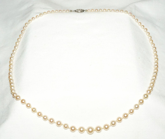Vintage Graduated Pearl Necklace 18" w. Unmarked Silver & Pearl Clasp (KoS) L15