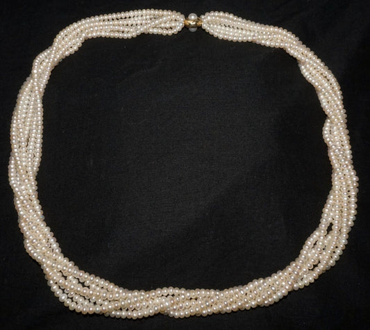 Vintage Matinee Length Freshwater Pearl Six Strand Necklace w. 14k Clasp (ShI)