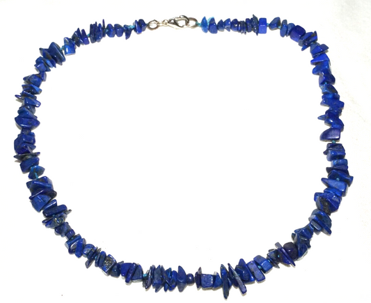 Vintage Lapis Lazuli Chip Bead Choker Necklace w. base Metal Clasp (GoB) #21