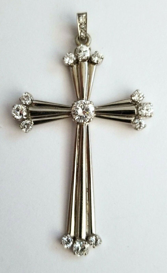 Vintage Large White Gold Cross Pendant w. 16x Diamonds approx. 1.58ct. (LeP)#11