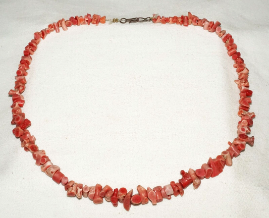Vintage Red Coral Branch Bead Choker Necklace w. Unmarked Silver Clasp (BeM) #7