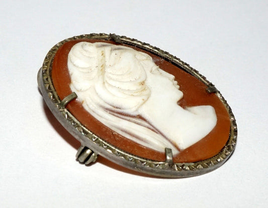 Vintage Italy 800 Silver set Pendant Brooch Shell Cameo Woman's Bust (LeL)