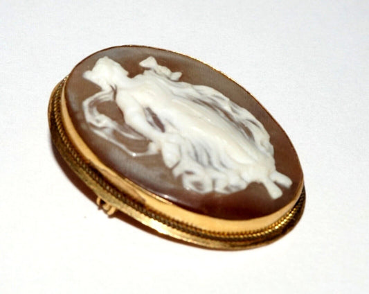 Vintage Italy 14k Yellow Gold Pendant Shell Cameo Woman in Gown Motif (LeL)