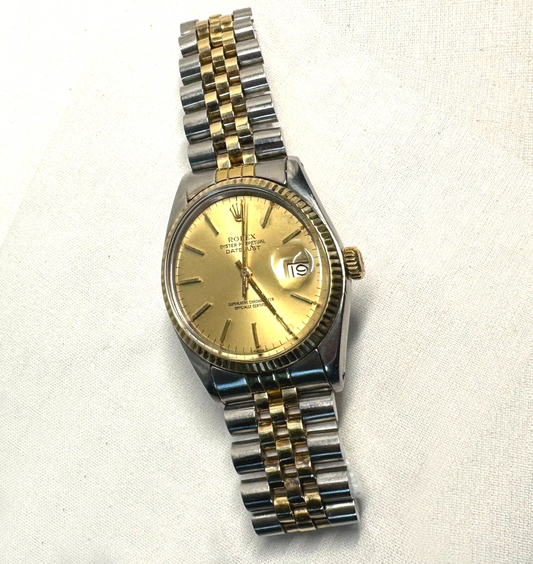 Vintage Rolex Datejust Mens 18k Yellow Gold/Steel Champagne Dial 36mm (ThC)