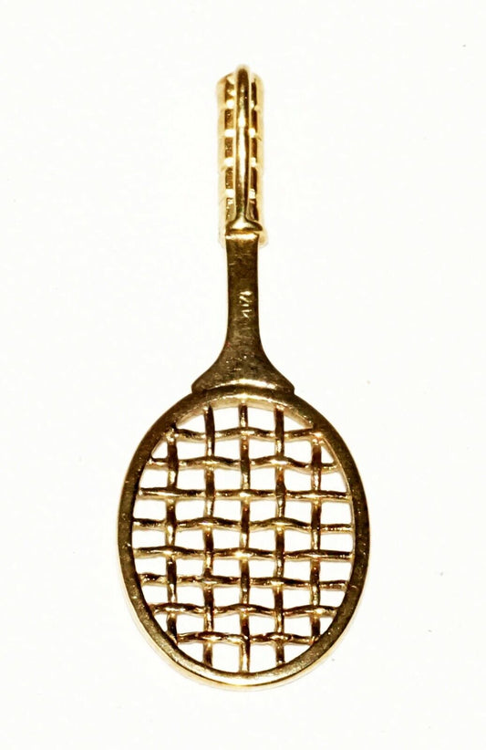 Vintage 14K Yellow Gold Tennis Racket Motif Pendant Charm (TaE)#77