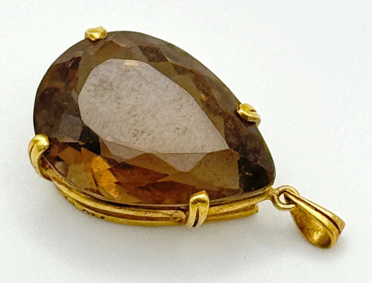 Vintage 14k Yellow Gold Pear-Cut Faceted Smoky Quartz Prong Set Pendant (McC)