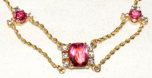 Vintage 14k Yellow Gold Rope Chain Necklace w. 3x Tourmalines & 12x CZ (GoB) #15