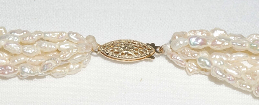 Vintage 8 Strand Seed Pearl Necklace 16" w 14k Gold Pierced Work Clasp (KnK)