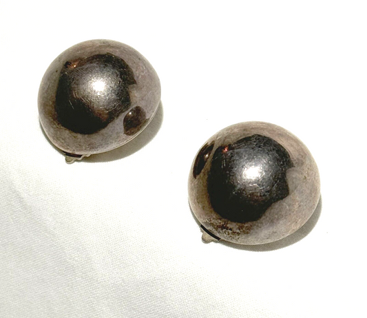 Vtg Sterling Silver Round Hollow Dome Non Pierce Earrings Marked 925 (KiL)19