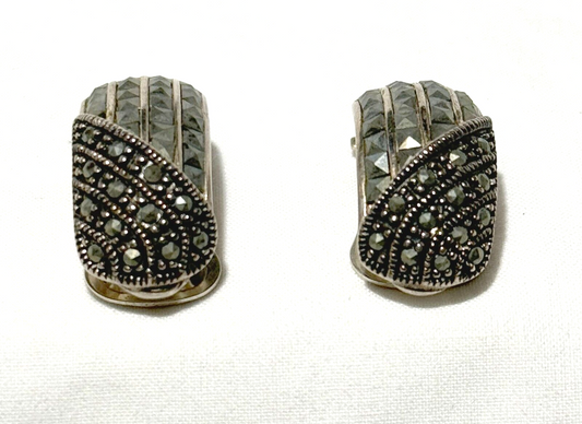 Vtg Sterling Silver Marcasite Non Pierce Earrings Marked 925 (KiL)21