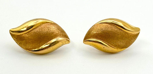 Vintage 14k Yellow Gold Satin & Glossy Freeform Earrings (KnK)