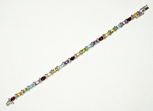 Vintage Sterling Silver Link Bracelet set w 23x Colorful Gemstones (SaR)#152