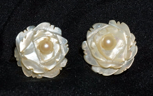Vintage Silver set Mother of Pearl Flower Motif Screw Back Earrings (JoD)