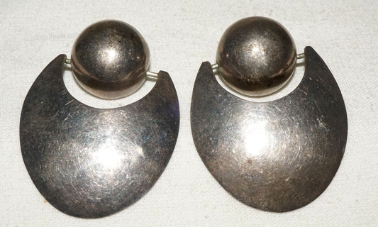 Vintage Mexican Sterling Silver Modernist Style Dangle Earrings (KiL)