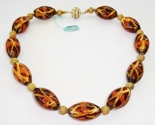 Vintage Hawaii Amber Color Glass Bead Necklace Designed by Russell Lowrey (Wel)