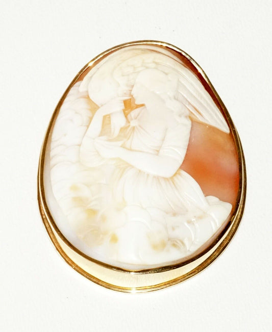 Vintage Gold Plated Large Shell Cameo Pendant w. Hebe Feeding Zeus Motif (TaE)14